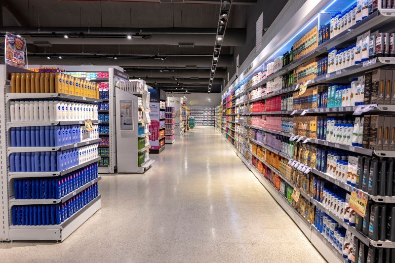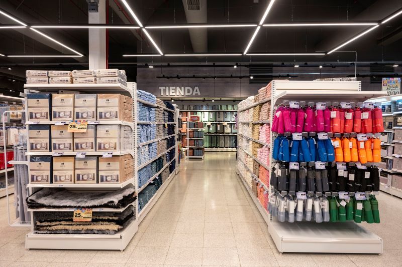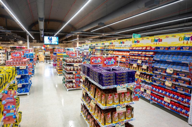 La compañía suministró las góndolas de Almacén, Bodega, Alimentación saludable, Perfumería, Bebés; y las barreras automáticas de acceso al salón de ventas.
