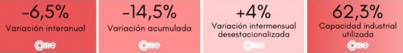 Los resultados surgen del Índice de Producción Industrial Pyme (IPIP) que elabora CAME, con una muestra que alcanzó a 420 industrias pyme a nivel federal.