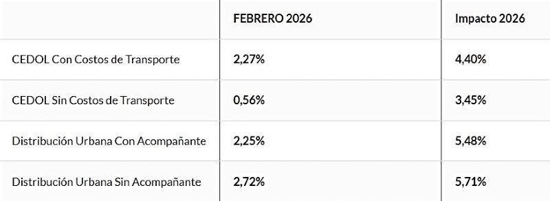 La Universidad Tecnológica Nacional (UTN) a través de su Centro Tecnológico de Transporte, Tránsito y Seguridad Vial (C3T), dio a conocer la evolución del Índice de Costos Logísticos Nacionales elaborado para la Cámara Empresaria de Operadores Logísticos (CEDOL), correspondiente al mes de febrero 2026.