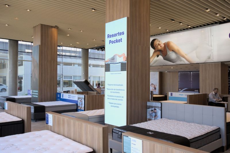 Ofrece espacios donde se podrán probar los productos en un ambiente relajado, diseñado para que los clientes experimenten el confort antes de tomar su decisión. A su vez, cuenta con un equipo de especialistas capacitado para brindar asesoramiento personalizado ya sea para la elección de un colchón ortopédico, uno de viscoelástica o una solución para el calor del verano.